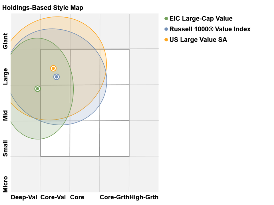 | EIC Large-Cap Value | $59.9B | $46.1B | 15.6x | 2.0x | 3.3% | 14.0% | 93.9% |